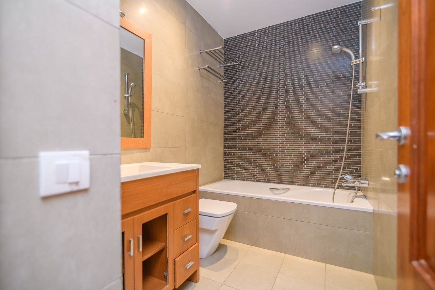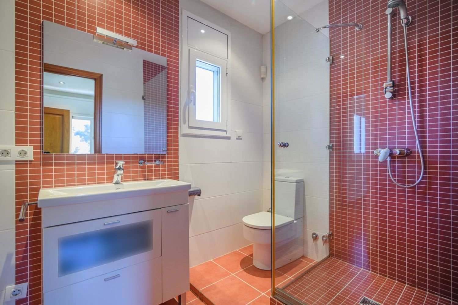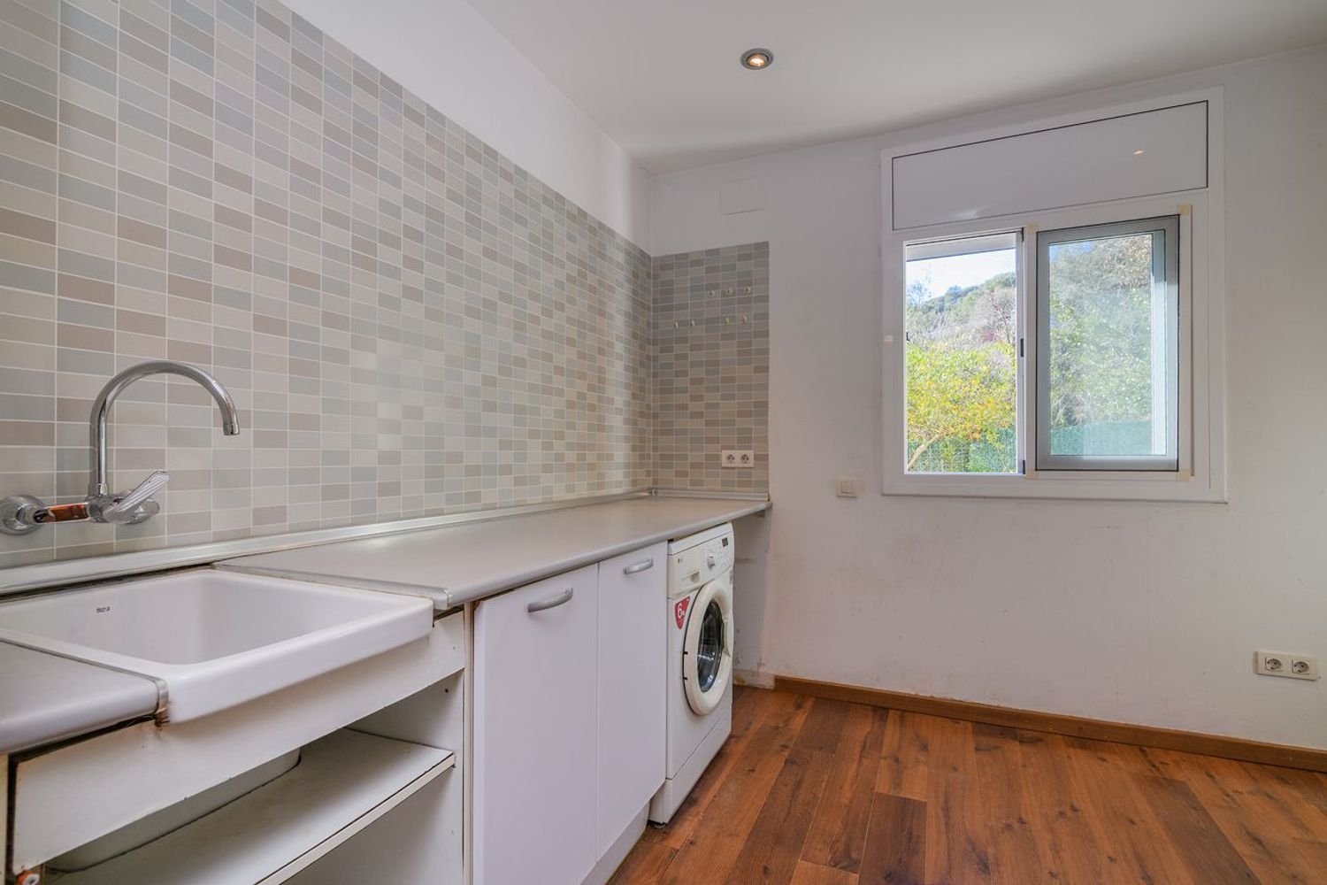 La cocina está separada del comedor por un tabique con un cómodo pasaplatos tiene ventana y puerta de salida al jardín.