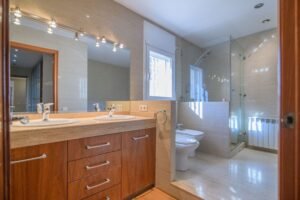 Tenemos también una despensa, un cuarto de lavado, 3 dormitorios, un baño completo y el dormitorio principal en suite con vestidor, subiendo a la primera planta tenemos 2 dormitorios más que comparten un baño completo.Y en la plana -1 hay dos grandes salones y un baño completo, uno de los salones tiene una barra de bar instalada y salida al jardín Y a la cocina exterior y la barbacoa perfecto para fiestas.